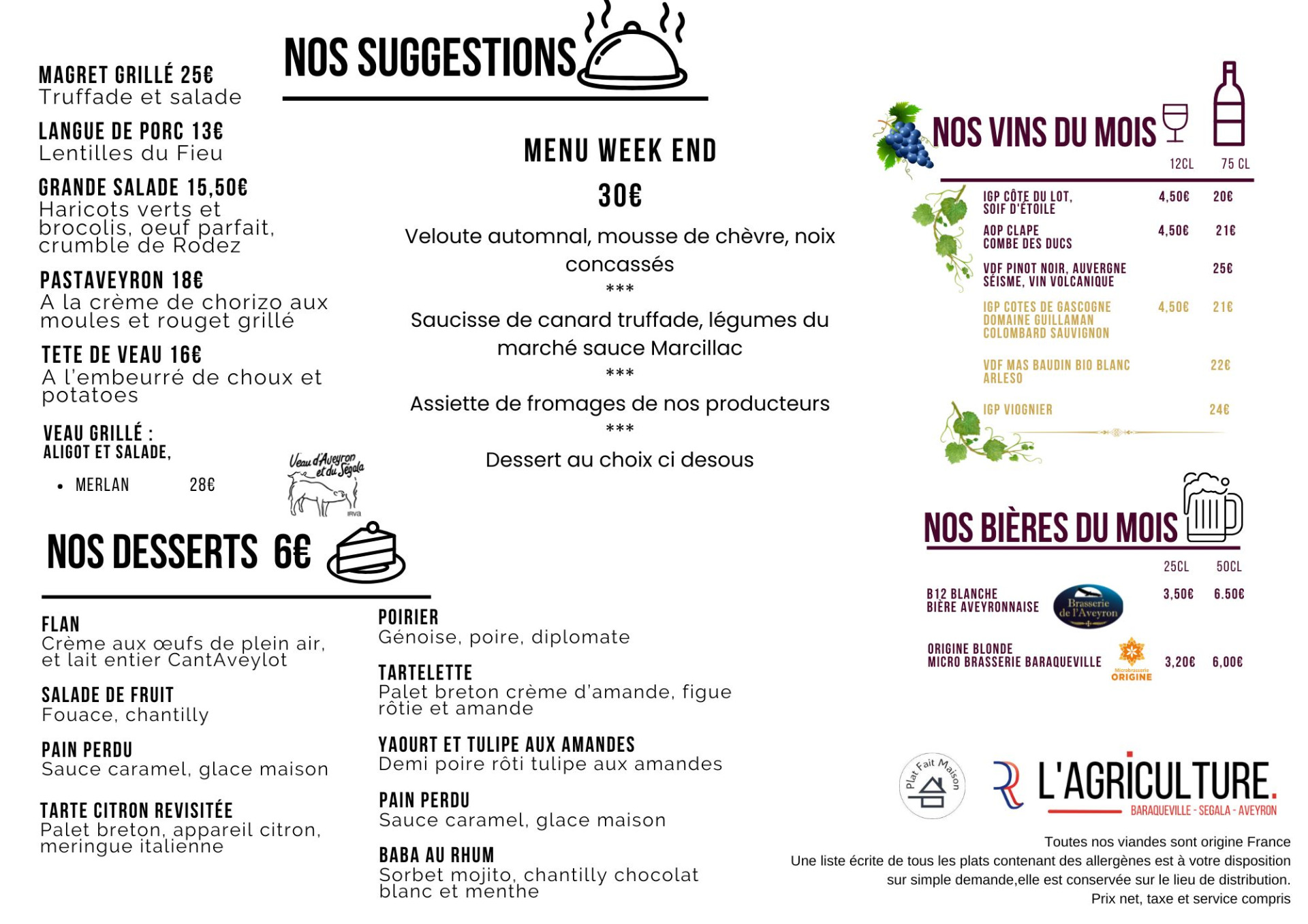 Tous les jours des suggestions viennent compléter notre carte en fonction des arrivages et du marché.